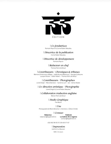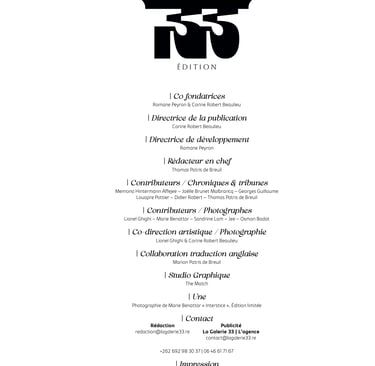 33 est un média indépendant né à La Réunion, à la croisée du catalogue d’art contemporain et du magazine de société.